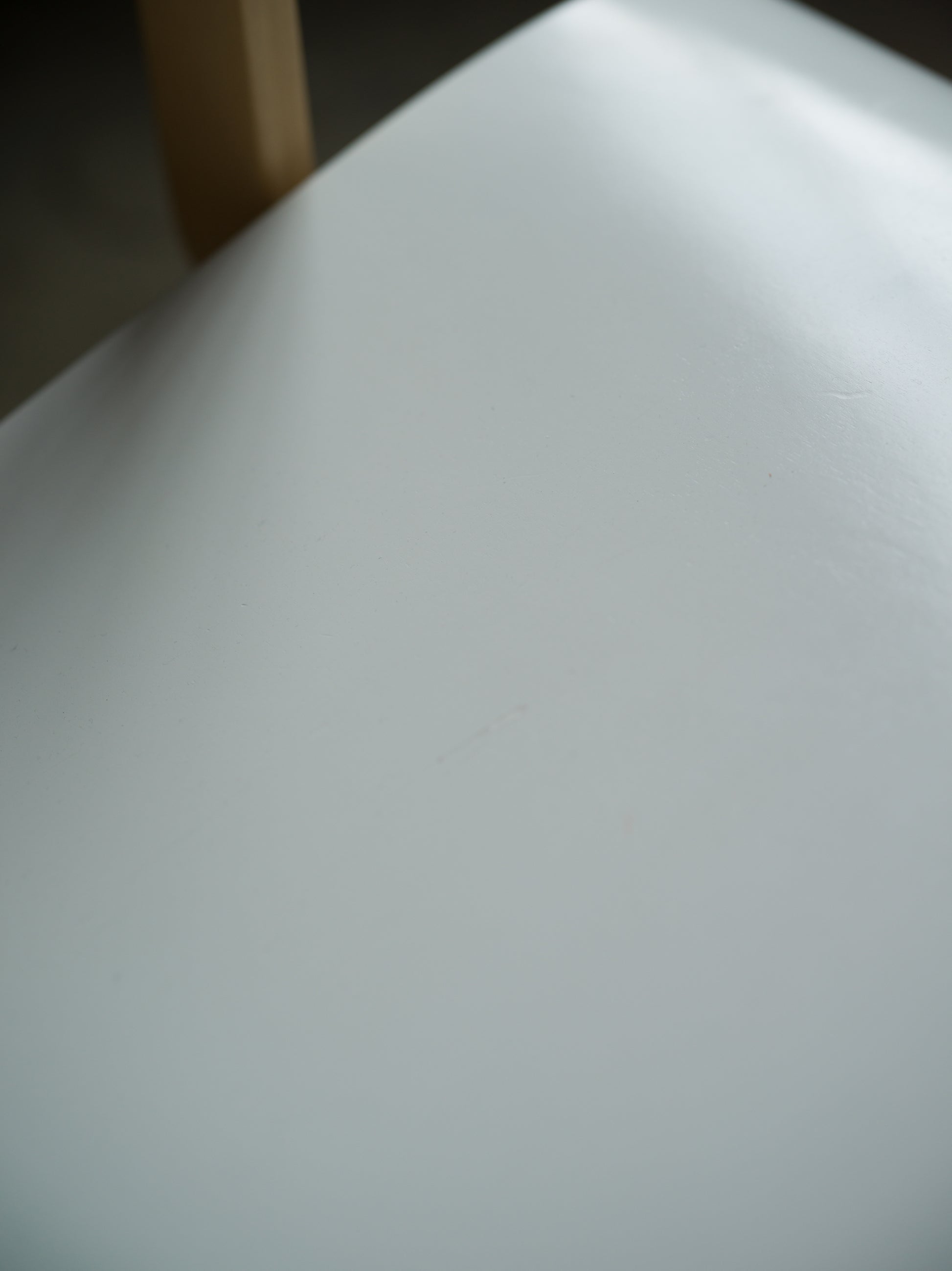 Denna vackra och mycket lekfulla stol väcker uppmärksamhet vart man än placerar den. Den gör sig lika vacker enskilt som i en grupp av flera Stolen 41 är tillverkad i formpressad och formgjuten björk som är lackerad gällande sits och rygg. Här i vitt. Märken och tecken på användning finns, men i mycket gott skick.